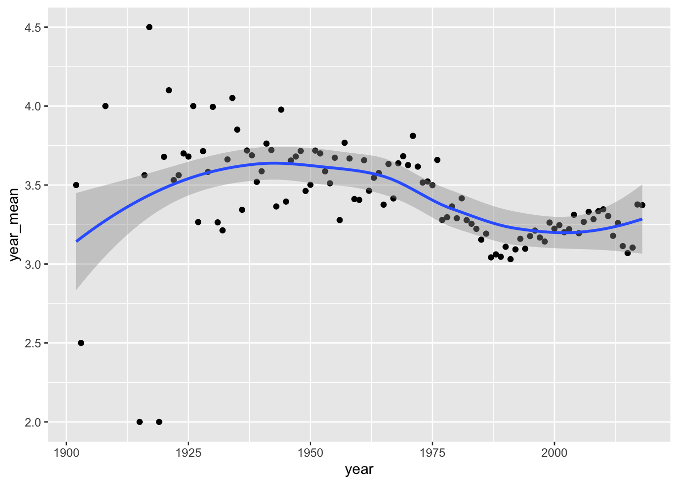 geom_smooth()`geom_smooth()` using method = 'loess' and formula = 'y ~ x'