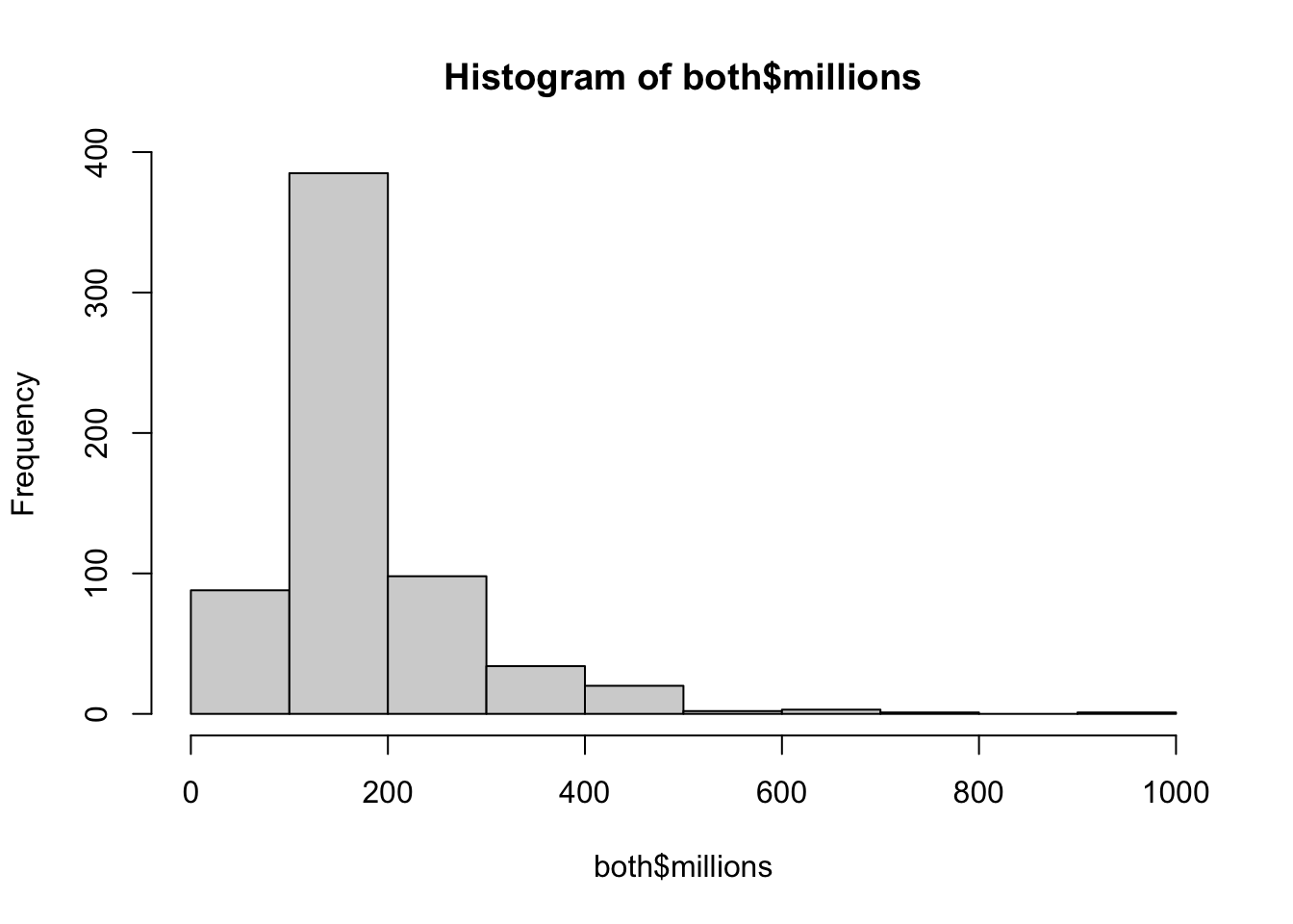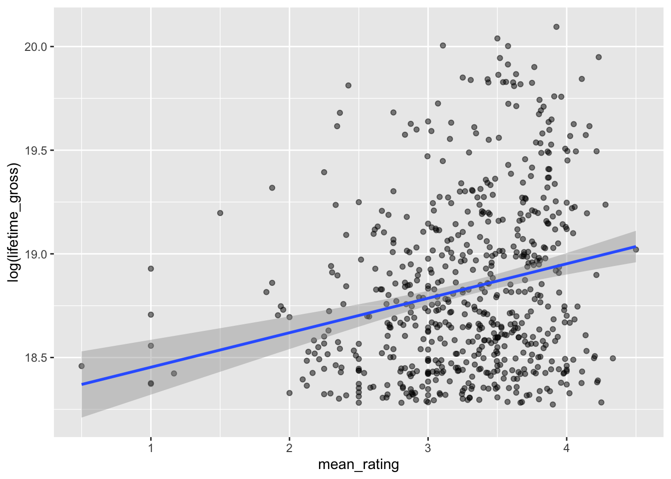 In this section, we’re interested in movie grossings – how much money did each film take at the box office? Do higher-rated films tend to make more money? What rating should a film have, to maximise the box office takings?