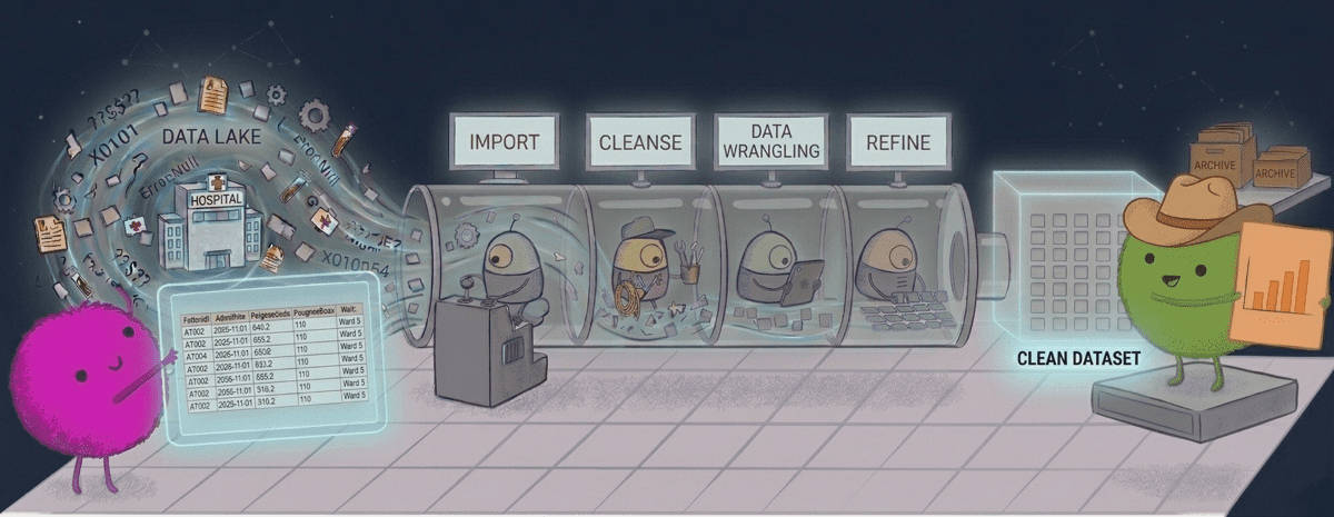 This practical uses synthetic Hospital Episode Statistics (HES) data on hip fractures to practise core data manipulation skills: importing data, validating keys, joining data at different levels, creating derived variables, and producing summaries. You will work with four linked tables that reflect common NHS-style data structure: patient-level, spell-level, episode-level, and outcomes.
